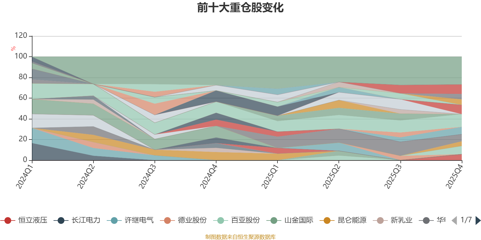 該基金持股集中度較高,近2年前十大重倉(cāng)股集中度長(zhǎng)期超過(guò)60%。截至2025年四季度末,基金十大重倉(cāng)股分別是思源電氣、東山精密、洛陽(yáng)鉬業(yè)、中際旭創(chuàng)、杰瑞股份、紫金礦業(yè)、恒立液壓、中國(guó)東航、運(yùn)達(dá)股份、南方航空。