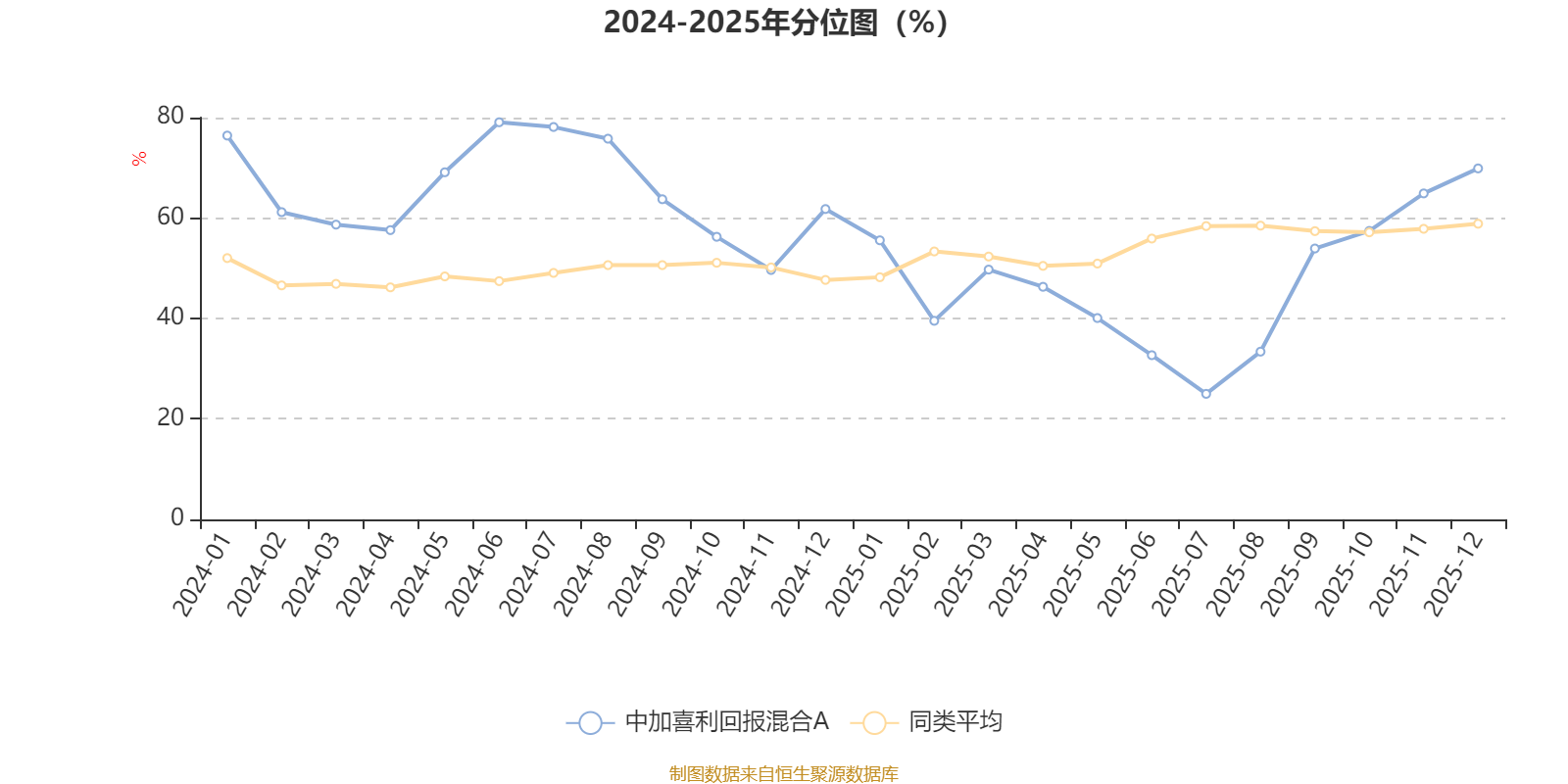 通過(guò)所選區(qū)間該基金凈值增長(zhǎng)率分位圖,可以觀察該基金與同類(lèi)基金業(yè)績(jī)比較情況。圖為坐標(biāo)原點(diǎn)到區(qū)間內(nèi)某時(shí)點(diǎn)的凈值增長(zhǎng)率在同類(lèi)基金中的分位數(shù)。