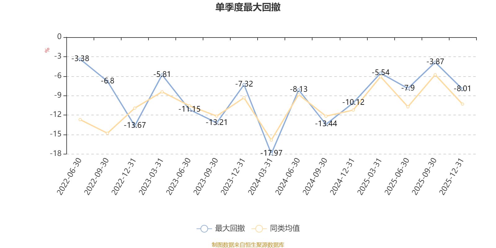 截至1月19日,基金近三年最大回撤為38.07%,同類可比基金排名207/378。單季度最大回撤出現(xiàn)在2024年一季度,為17.97%。