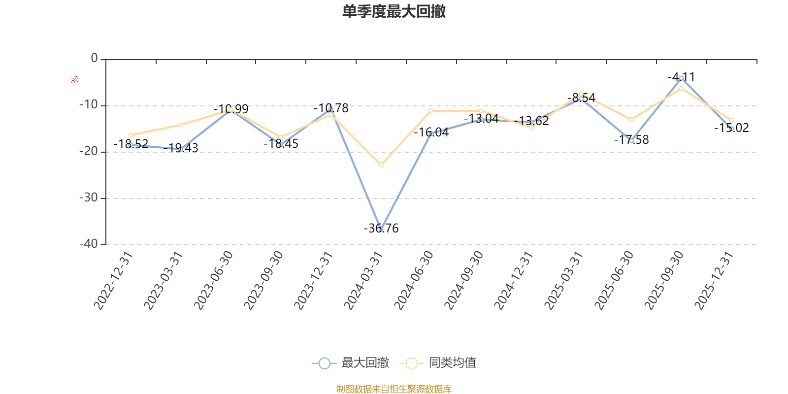 截至1月20日,基金近三年最大回撤為48.1%,同類可比基金排名42/66。單季度最大回撤出現(xiàn)在2024年一季度,為36.76%。