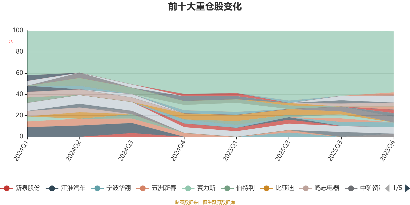 截至2025年四季度末,基金十大重倉股分別是三花智控、拓普集團、華友鈷業(yè)、天賜材料、贛鋒鋰業(yè)、新宙邦、均勝電子、天華新能、中礦資源、天齊鋰業(yè)。