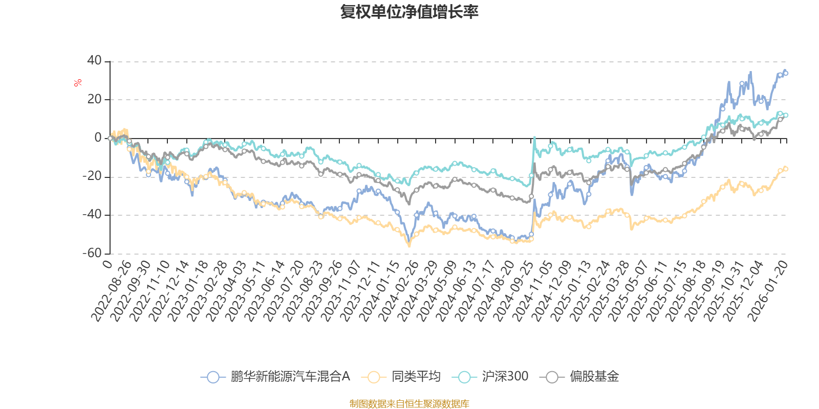截至1月20日,鵬華新能源汽車混合A近三個月復(fù)權(quán)單位凈值增長率為14.31%,位于同類可比基金32/100;近半年復(fù)權(quán)單位凈值增長率為54.96%,位于同類可比基金7/100;近一年復(fù)權(quán)單位凈值增長率為74.71%,位于同類可比基金7/92;近三年復(fù)權(quán)單位凈值增長率為66.49%,位于同類可比基金3/68。