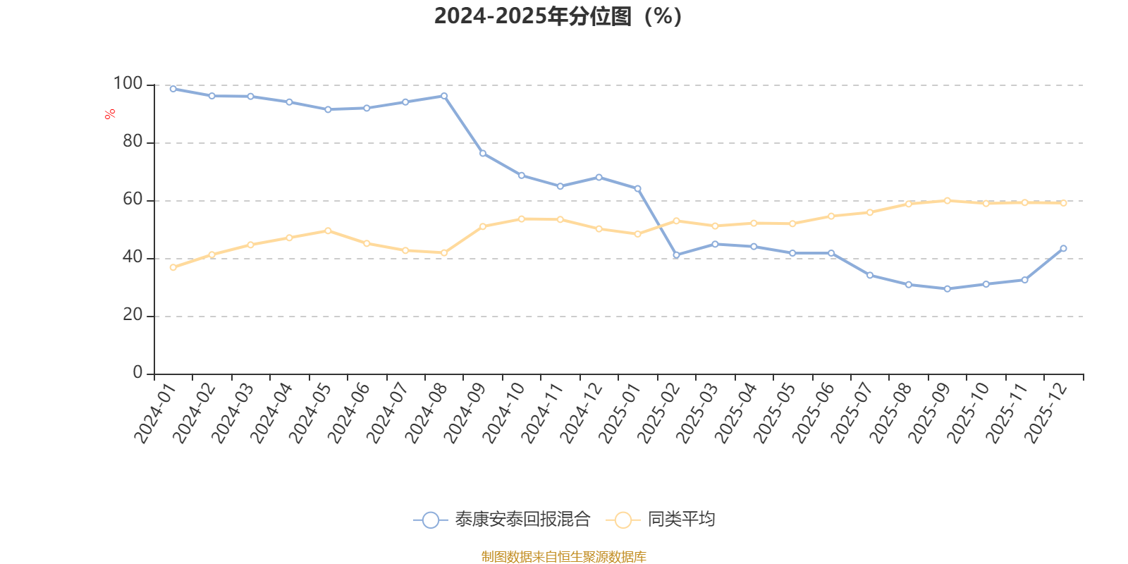 通過(guò)所選區(qū)間該基金凈值增長(zhǎng)率分位圖,可以觀察該基金與同類(lèi)基金業(yè)績(jī)比較情況。圖為坐標(biāo)原點(diǎn)到區(qū)間內(nèi)某時(shí)點(diǎn)的凈值增長(zhǎng)率在同類(lèi)基金中的分位數(shù)。