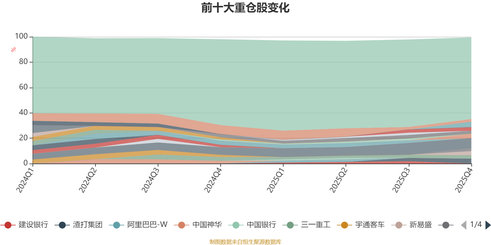截至2025年四季度末,基金十大重倉股分別是騰訊控股、洛陽鉬業(yè)、渣打集團(tuán)、中際旭創(chuàng)、新易盛、匯豐控股、三一重工、紫金礦業(yè)、福耀玻璃、美的集團(tuán)。