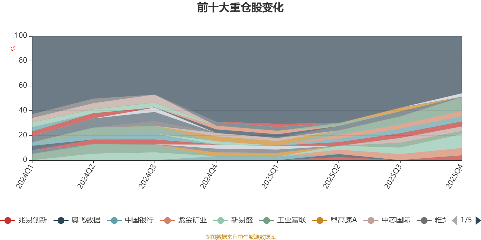 截至2025年四季度末,基金十大重倉股分別是中際旭創(chuàng)、新易盛、紫金礦業(yè)、寒武紀、天孚通信、立訊精密、兆易創(chuàng)新、中芯國際、中微公司、工業(yè)富聯(lián)。