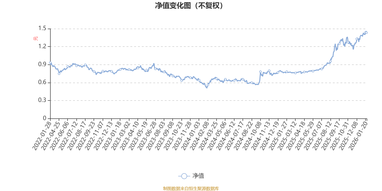 通過所選區(qū)間該基金凈值增長率分位圖,可以觀察該基金與同類基金業(yè)績比較情況。圖為坐標原點到區(qū)間內(nèi)某時點的凈值增長率在同類基金中的分位數(shù)。
