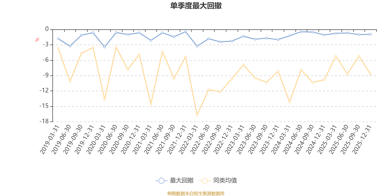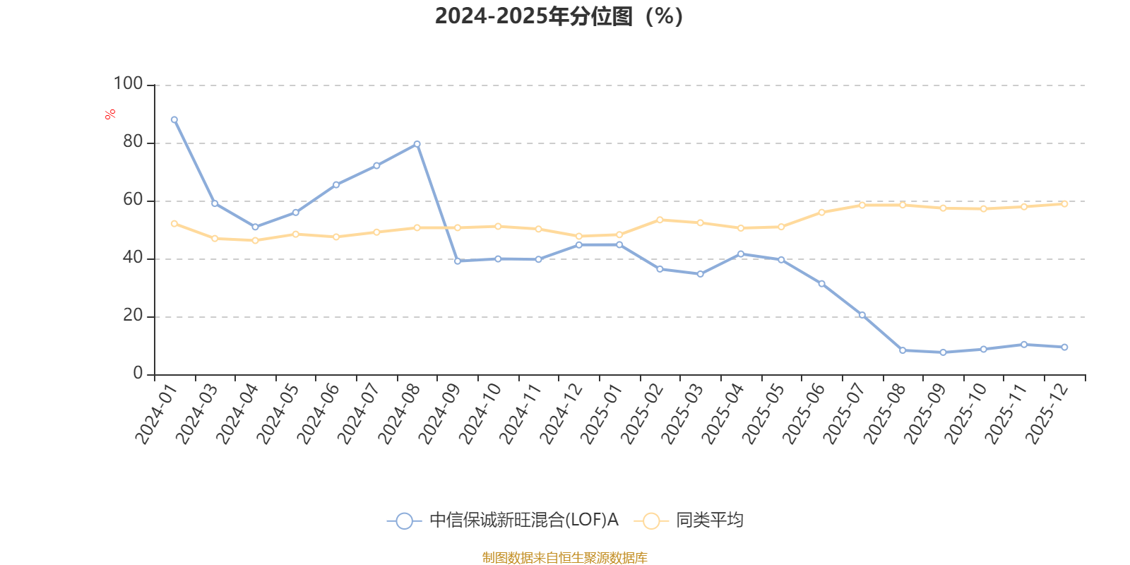 通過所選區(qū)間該基金凈值增長率分位圖,可以觀察該基金與同類基金業(yè)績比較情況。圖為坐標(biāo)原點(diǎn)到區(qū)間內(nèi)某時(shí)點(diǎn)的凈值增長率在同類基金中的分位數(shù)。