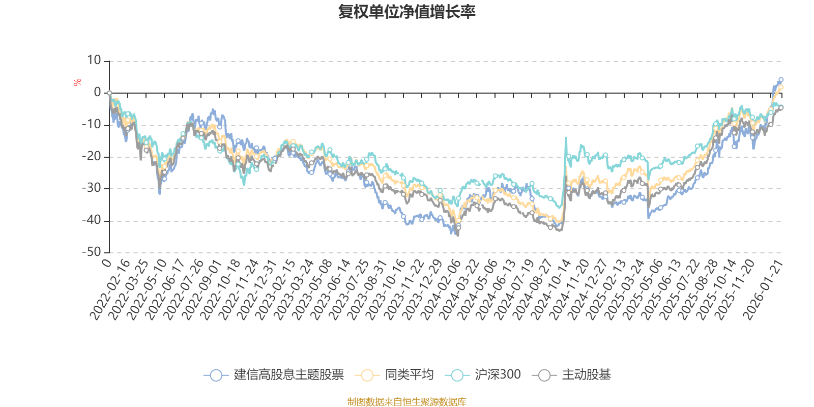 截至1月21日,建信高股息主題股票近三個(gè)月復(fù)權(quán)單位凈值增長(zhǎng)率為22.11%,位于同類可比基金8/167;近半年復(fù)權(quán)單位凈值增長(zhǎng)率為41.96%,位于同類可比基金30/167;近一年復(fù)權(quán)單位凈值增長(zhǎng)率為58.50%,位于同類可比基金25/165;近三年復(fù)權(quán)單位凈值增長(zhǎng)率為24.91%,位于同類可比基金73/156。