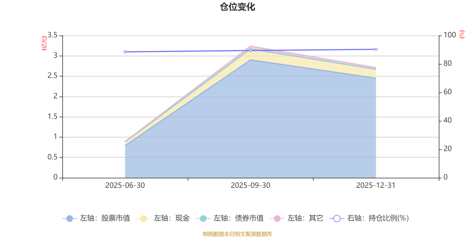 據(jù)定期報告數(shù)據(jù)統(tǒng)計,成立以來平均股票倉位為89.44%,同類平均為84.04%。2025年末基金達(dá)到90.32%的最高倉位,2025年上半年末最低,為88.52%。