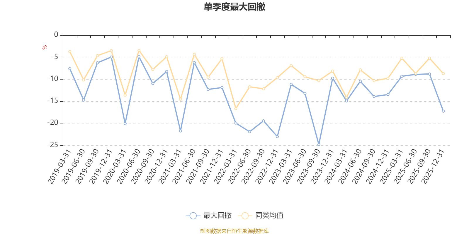 通過所選區(qū)間該基金凈值增長(zhǎng)率分位圖,可以觀察該基金與同類基金業(yè)績(jī)比較情況。圖為坐標(biāo)原點(diǎn)到區(qū)間內(nèi)某時(shí)點(diǎn)的凈值增長(zhǎng)率在同類基金中的分位數(shù)。