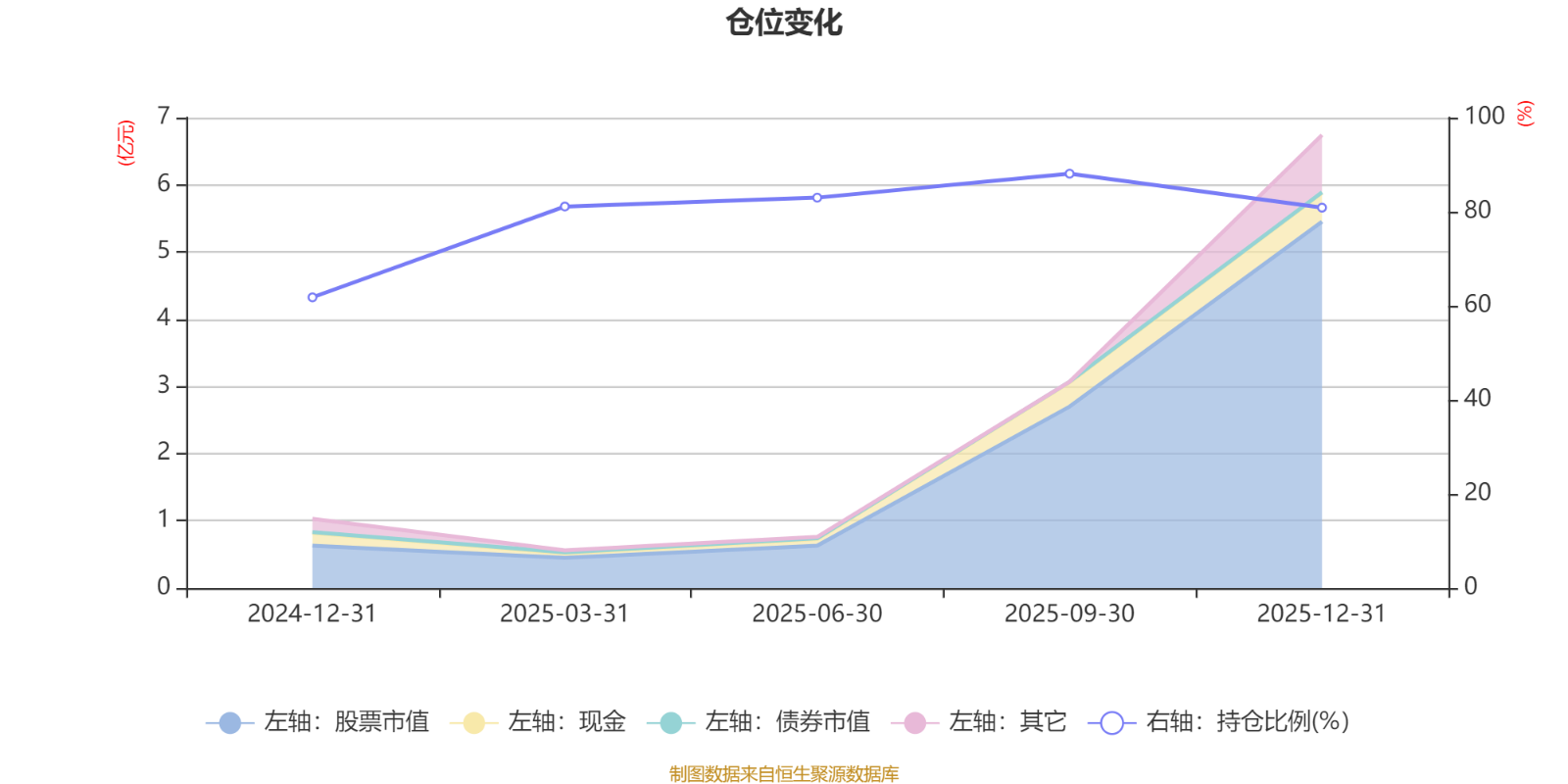 據(jù)定期報告數(shù)據(jù)統(tǒng)計,成立以來平均股票倉位為78.96%,同類平均為84.04%。2025年三季度末基金達到88.08%的最高倉位,2024年末最低,為61.79%。