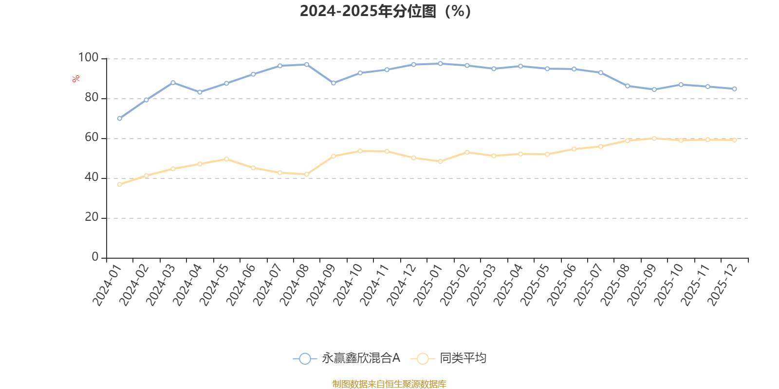 通過(guò)所選區(qū)間該基金凈值增長(zhǎng)率分位圖,可以觀察該基金與同類基金業(yè)績(jī)比較情況。圖為坐標(biāo)原點(diǎn)到區(qū)間內(nèi)某時(shí)點(diǎn)的凈值增長(zhǎng)率在同類基金中的分位數(shù)。