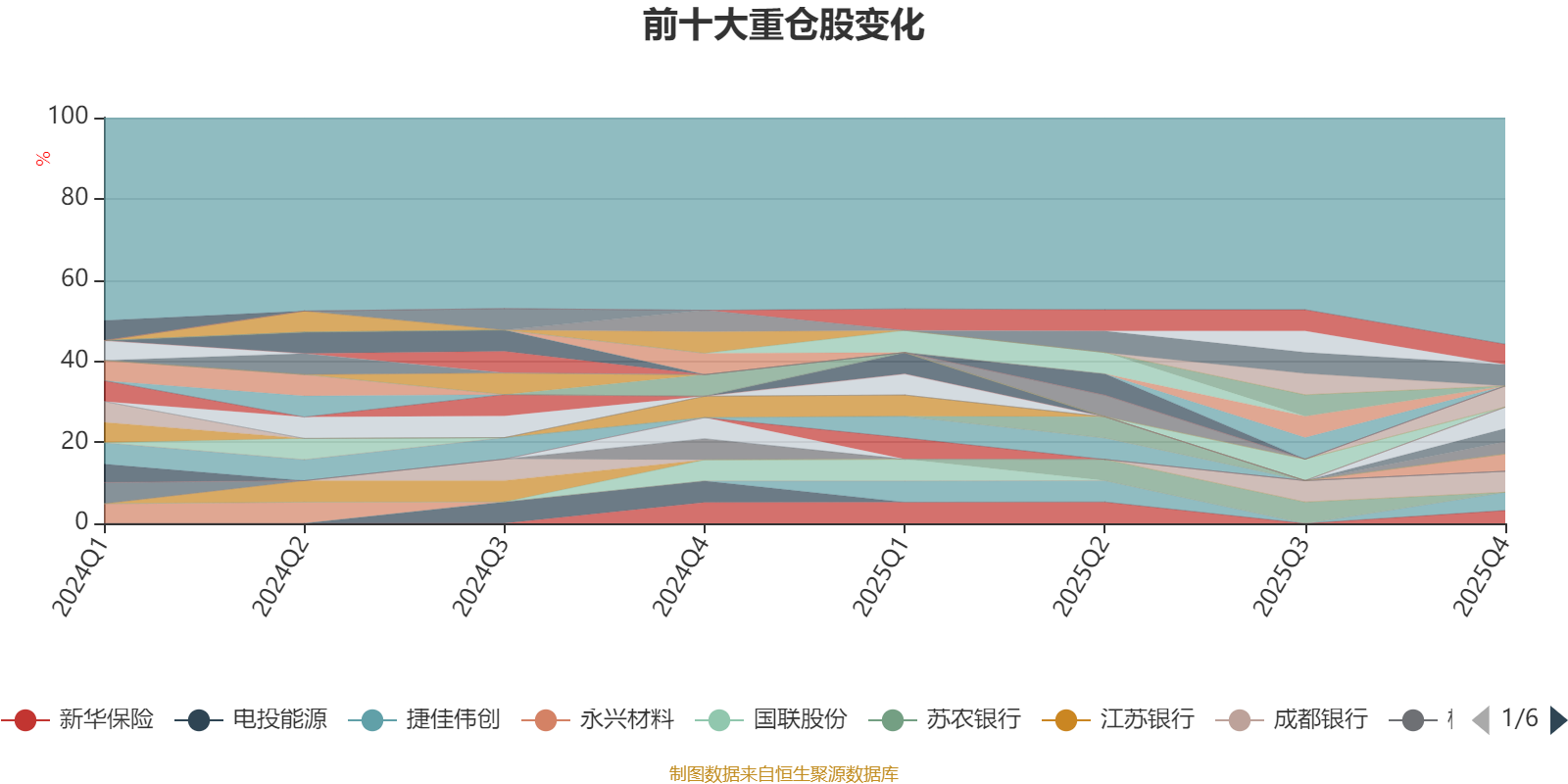 截至2025年四季度末,基金十大重倉(cāng)股分別是云天化、長(zhǎng)沙銀行、華勤技術(shù)、成都銀行、杭州銀行、捷佳偉創(chuàng)、金誠(chéng)信、揚(yáng)杰科技、新華保險(xiǎn)、城發(fā)環(huán)境。