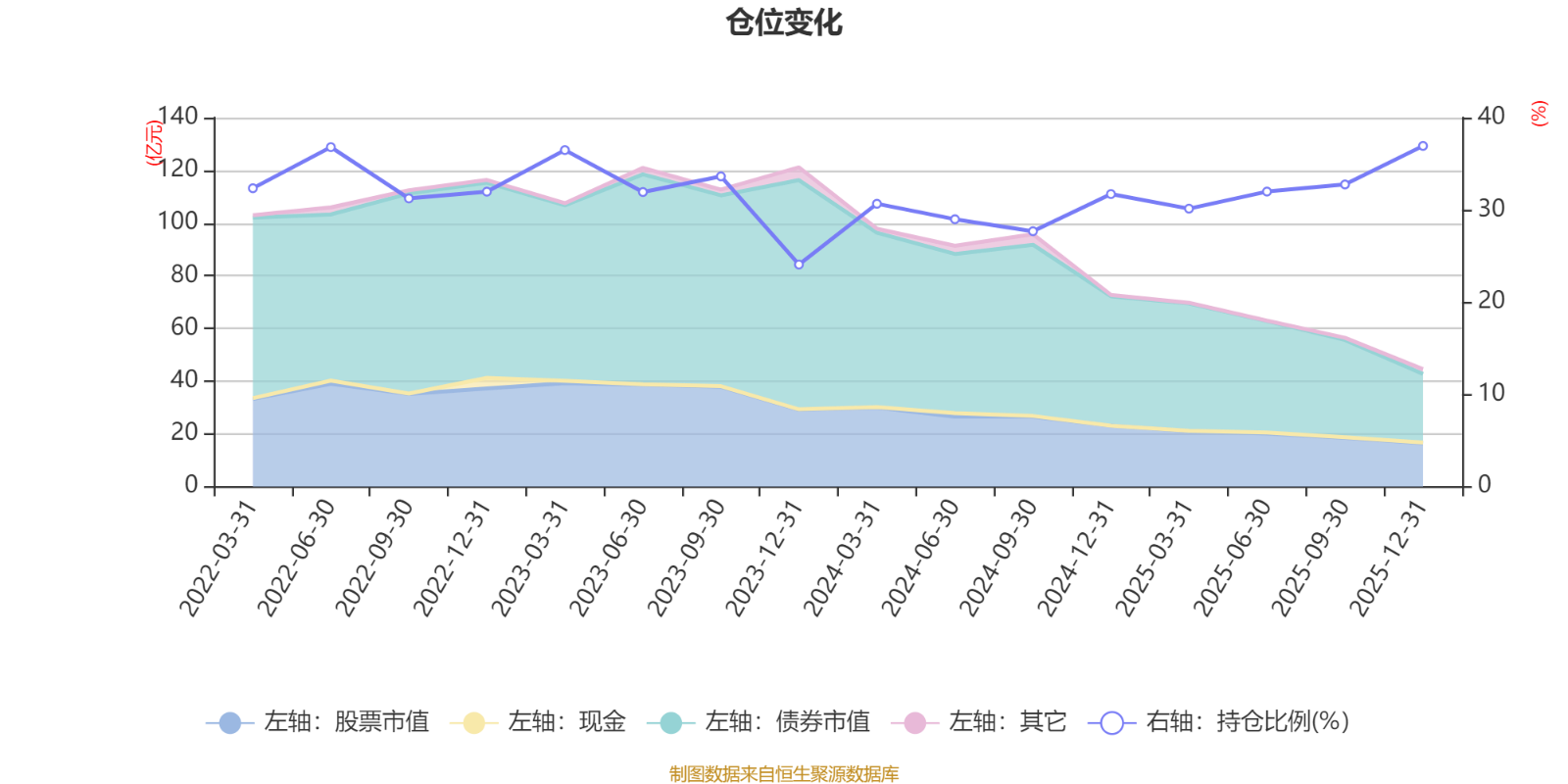 據(jù)定期報(bào)告數(shù)據(jù)統(tǒng)計(jì),近三年平均股票倉(cāng)位為31.41%,同類平均為19.2%。2025年末基金達(dá)到36.93%的最高倉(cāng)位,2023年末最低,為24.07%。