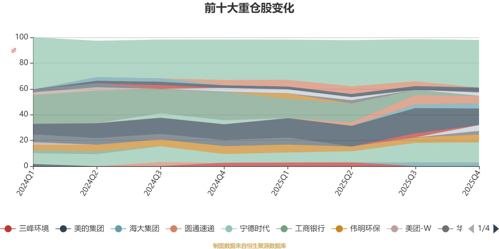 該基金持股集中度較高。截至2025年四季度末,基金十大重倉(cāng)股分別是寧德時(shí)代、騰訊控股、偉明環(huán)保、立訊精密、邁為股份、紫金礦業(yè)、中國(guó)太保、中國(guó)平安、海大集團(tuán)、華潤(rùn)萬(wàn)象生活。