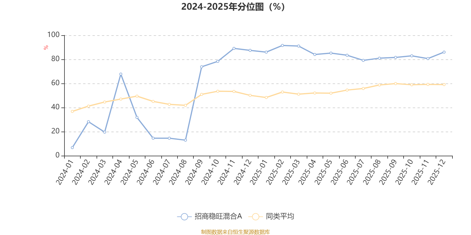通過(guò)所選區(qū)間該基金凈值增長(zhǎng)率分位圖,可以觀察該基金與同類基金業(yè)績(jī)比較情況。圖為坐標(biāo)原點(diǎn)到區(qū)間內(nèi)某時(shí)點(diǎn)的凈值增長(zhǎng)率在同類基金中的分位數(shù)。