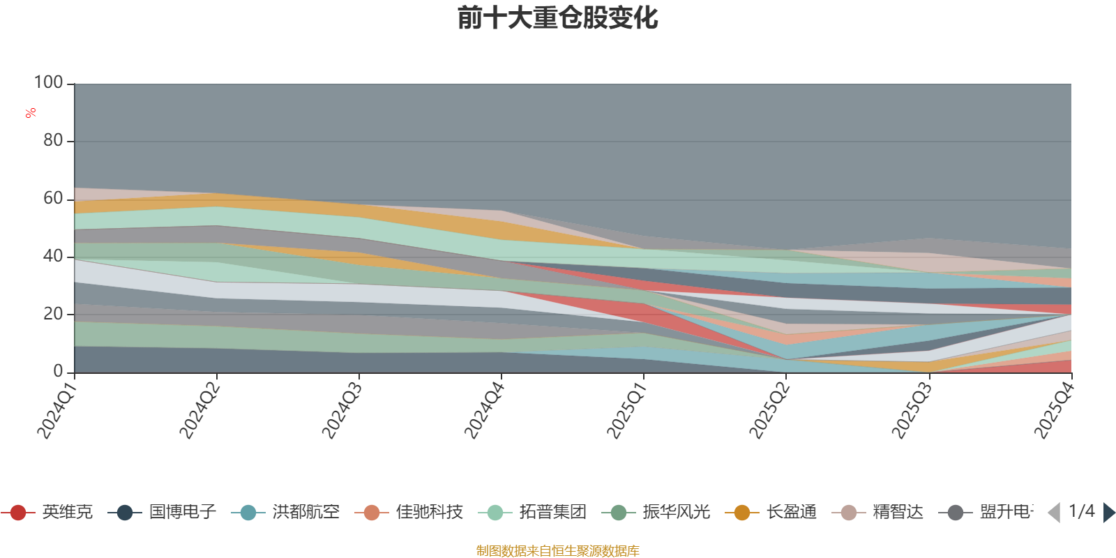 截至2025年四季度末,基金十大重倉股分別是復旦微電、睿創(chuàng)微納、臻鐳科技、英維克、拓普集團、芯動聯(lián)科、火炬電子、精智達、京儀裝備、佳馳科技。