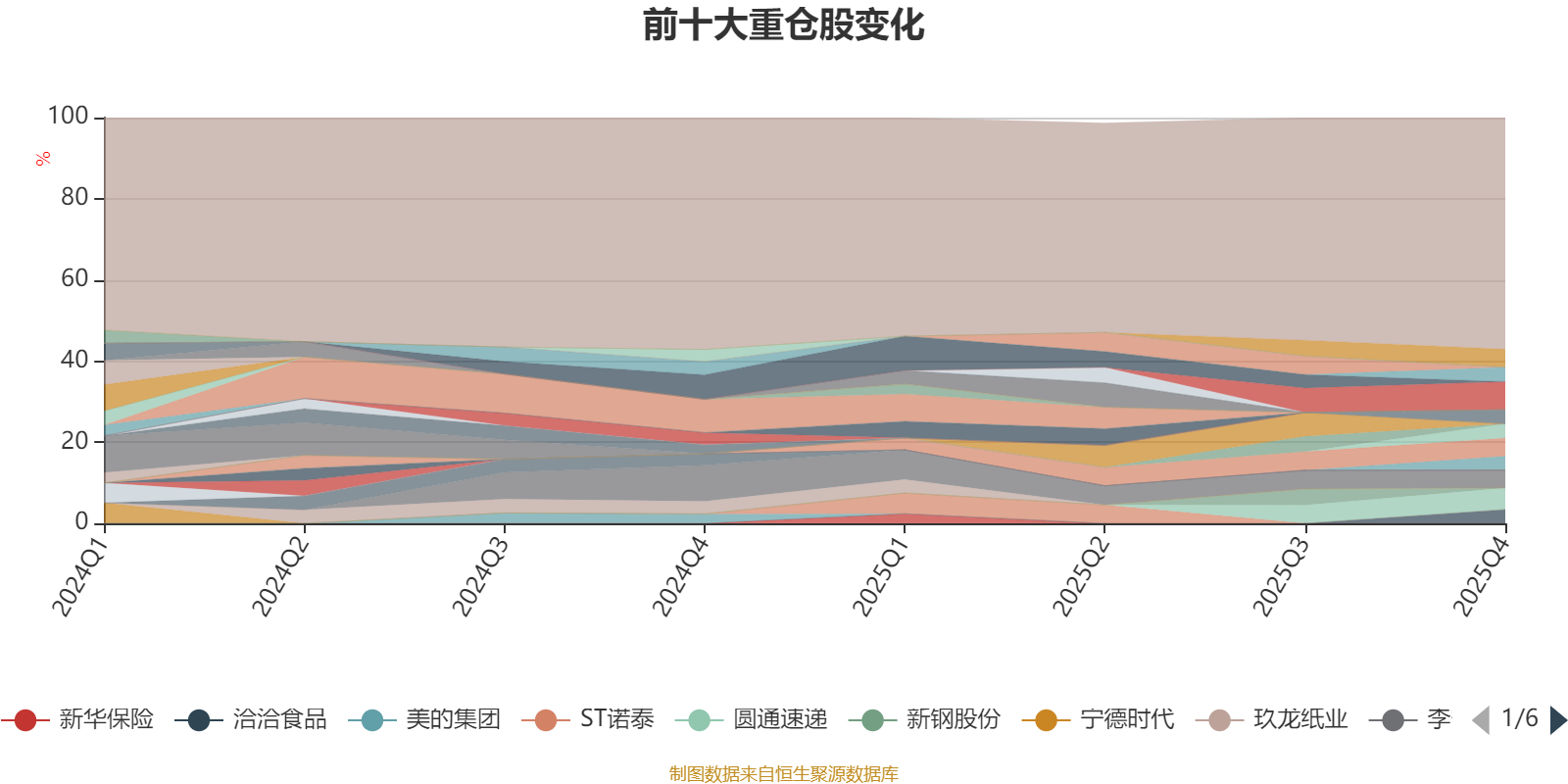 截至2025年四季度末,基金十大重倉(cāng)股分別是建滔集團(tuán)、圓通速遞、希慎興業(yè)、中糧家佳康、李寧、貴州茅臺(tái)、美團(tuán)-W、中國(guó)海洋石油、桐昆股份、洽洽食品。