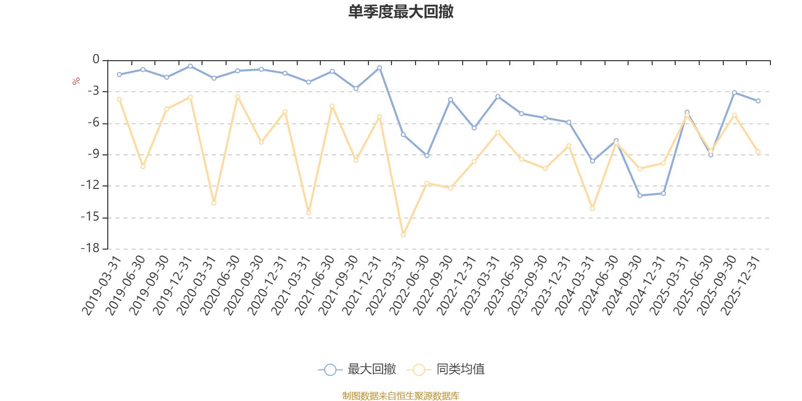 通過(guò)所選區(qū)間該基金凈值增長(zhǎng)率分位圖,可以觀察該基金與同類基金業(yè)績(jī)比較情況。圖為坐標(biāo)原點(diǎn)到區(qū)間內(nèi)某時(shí)點(diǎn)的凈值增長(zhǎng)率在同類基金中的分位數(shù)。