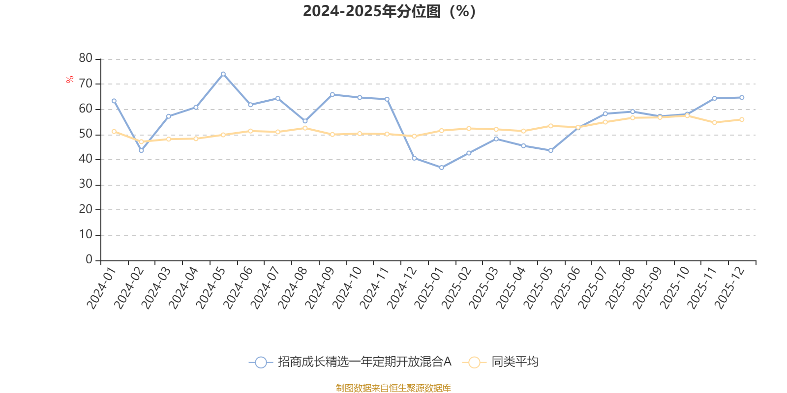 通過所選區(qū)間該基金凈值增長率分位圖,可以觀察該基金與同類基金業(yè)績比較情況。圖為坐標原點到區(qū)間內(nèi)某時點的凈值增長率在同類基金中的分位數(shù)。