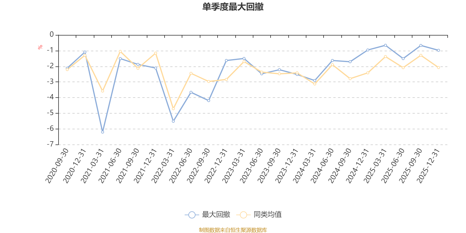 截至1月21日,基金近三年最大回撤為6.96%,同類可比基金排名300/526。單季度最大回撤出現(xiàn)在2021年一季度,為6.2%。
