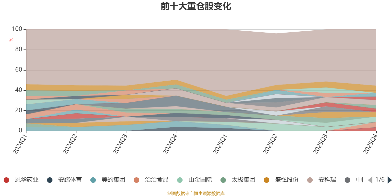 截至2025年四季度末,基金十大重倉(cāng)股分別是涪陵榨菜、太陽(yáng)紙業(yè)、洽洽食品、阿里巴巴-W、金天鈦業(yè)、天壇生物、中國(guó)電建、國(guó)網(wǎng)信通、恩華藥業(yè)、廣發(fā)證券。