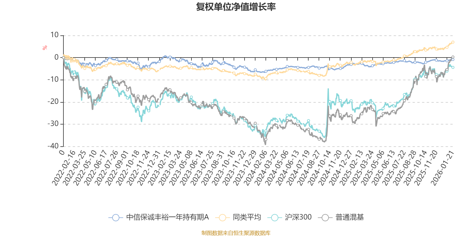 截至1月21日,中信保誠豐裕一年持有期A近三個(gè)月復(fù)權(quán)單位凈值增長率為1.05%,位于同類可比基金477/629;近半年復(fù)權(quán)單位凈值增長率為0.60%,位于同類可比基金595/629;近一年復(fù)權(quán)單位凈值增長率為2.13%,位于同類可比基金599/626;近三年復(fù)權(quán)單位凈值增長率為-1.56%,位于同類可比基金547/564。