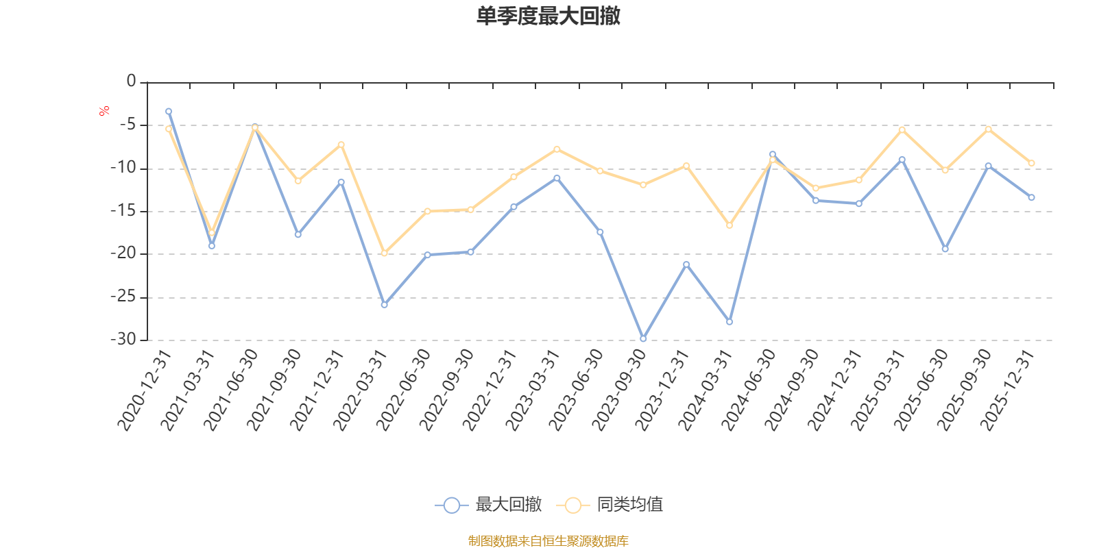通過所選區(qū)間該基金凈值增長率分位圖,可以觀察該基金與同類基金業(yè)績比較情況。圖為坐標(biāo)原點到區(qū)間內(nèi)某時點的凈值增長率在同類基金中的分位數(shù)。