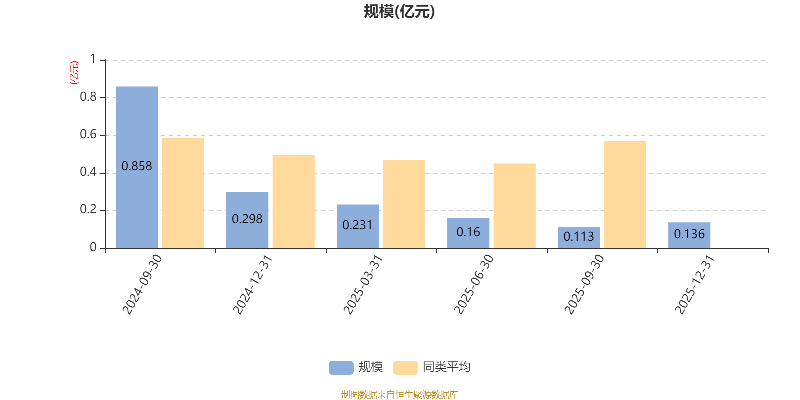 截至2025年四季度末,基金規(guī)模為1358.84萬(wàn)元。