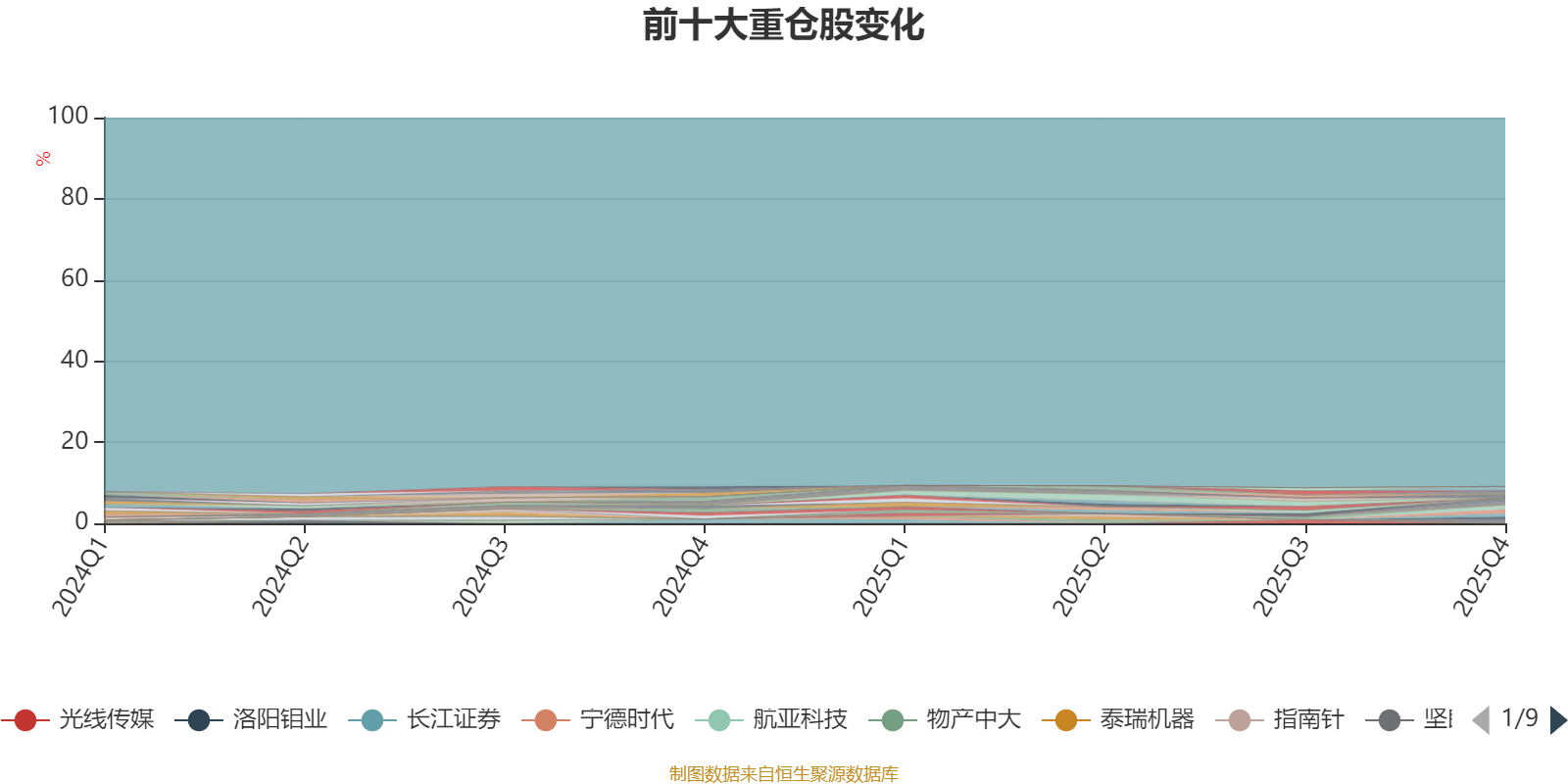 截至2025年四季度末,基金十大重倉股分別是愷英網絡、高德紅外、金誠信、珠海冠宇、大族激光、中鎢高新、內蒙一機、麥格米特、廈門鎢業(yè)、共創(chuàng)草坪。