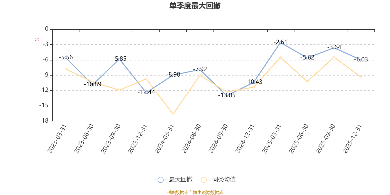 通過所選區(qū)間該基金凈值增長率分位圖,可以觀察該基金與同類基金業(yè)績比較情況。圖為坐標(biāo)原點(diǎn)到區(qū)間內(nèi)某時(shí)點(diǎn)的凈值增長率在同類基金中的分位數(shù)。