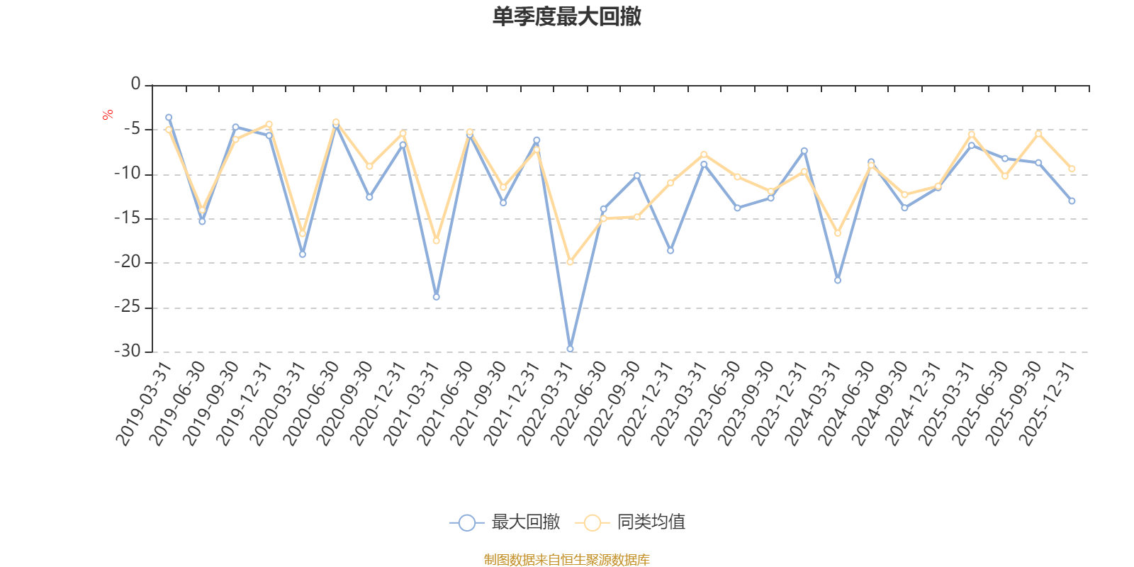 通過所選區(qū)間該基金凈值增長率分位圖,可以觀察該基金與同類基金業(yè)績比較情況。圖為坐標原點到區(qū)間內(nèi)某時點的凈值增長率在同類基金中的分位數(shù)。