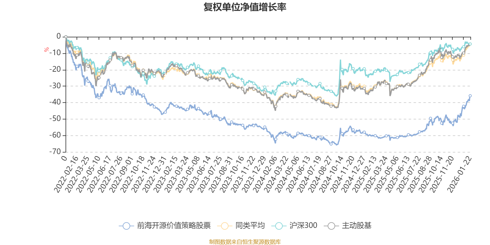 截至1月22日,前海開源價值策略股票近三個月復(fù)權(quán)單位凈值增長率為31.38%,位于同類可比基金3/121;近半年復(fù)權(quán)單位凈值增長率為51.69%,位于同類可比基金11/121;近一年復(fù)權(quán)單位凈值增長率為61.74%,位于同類可比基金20/119;近三年復(fù)權(quán)單位凈值增長率為6.84%,位于同類可比基金62/89。