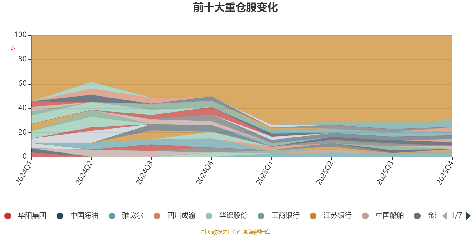 截至2025年四季度末,基金十大重倉股分別是格力電器、雅戈爾、梅花生物、華夏銀行、北京銀行、江蘇銀行、中國神華、光大銀行、興業(yè)銀行、中信銀行。