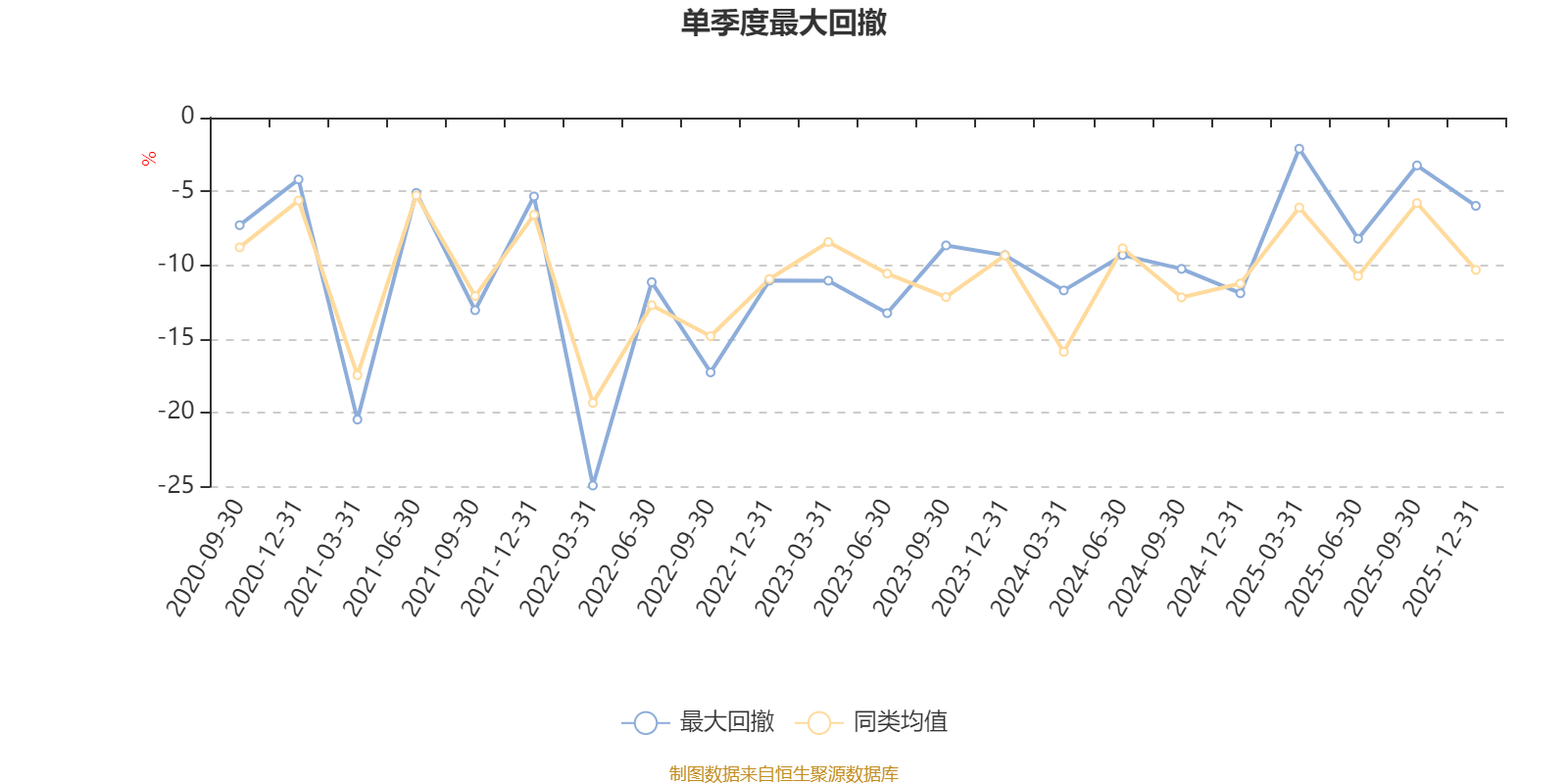 通過所選區(qū)間該基金凈值增長率分位圖,可以觀察該基金與同類基金業(yè)績比較情況。圖為坐標(biāo)原點(diǎn)到區(qū)間內(nèi)某時(shí)點(diǎn)的凈值增長率在同類基金中的分位數(shù)。