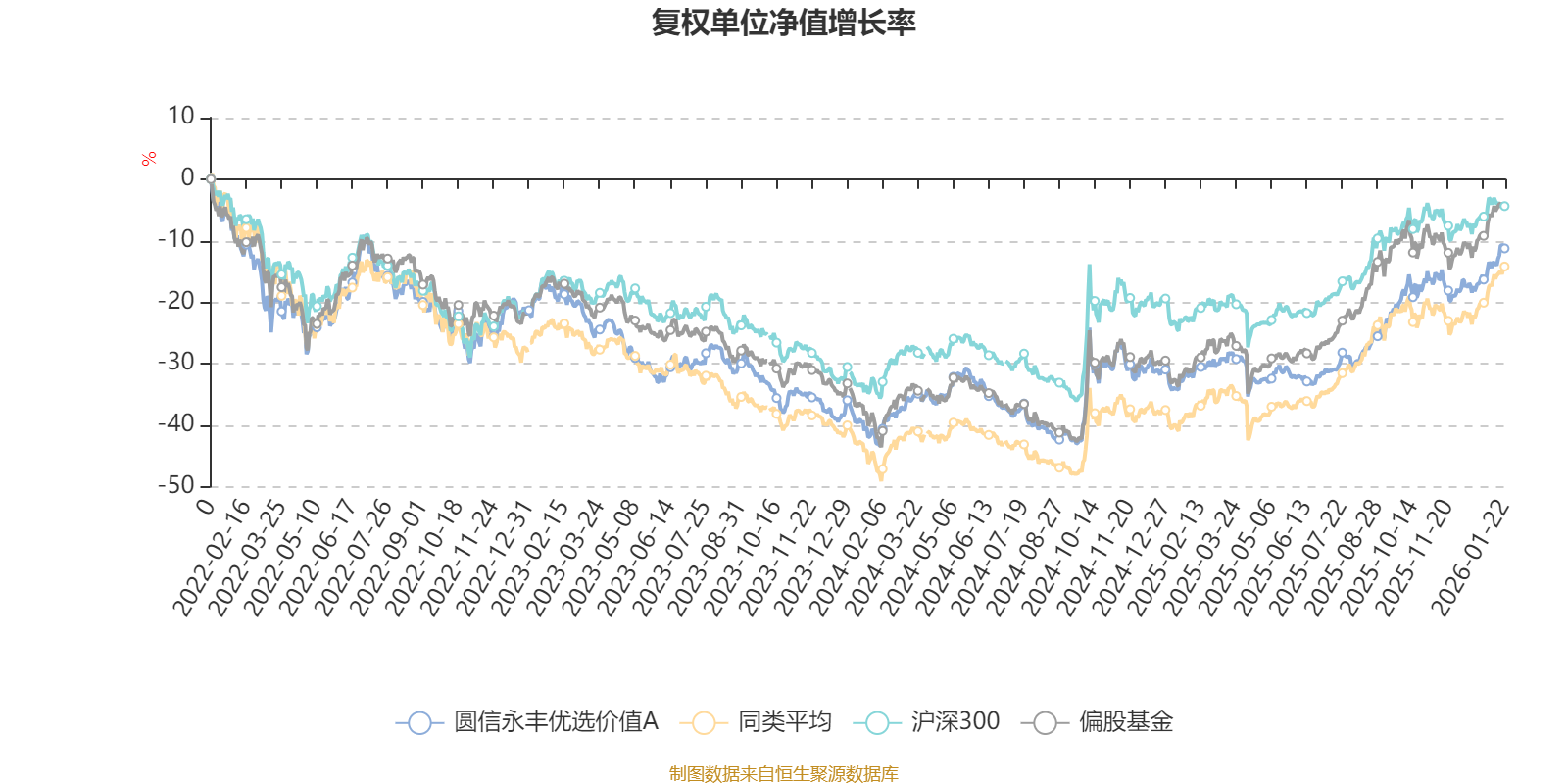 截至1月22日,圓信永豐優(yōu)選價(jià)值A(chǔ)近三個(gè)月復(fù)權(quán)單位凈值增長率為8.55%,位于同類可比基金380/689;近半年復(fù)權(quán)單位凈值增長率為23.59%,位于同類可比基金353/689;近一年復(fù)權(quán)單位凈值增長率為30.55%,位于同類可比基金428/673;近三年復(fù)權(quán)單位凈值增長率為7.66%,位于同類可比基金247/396。