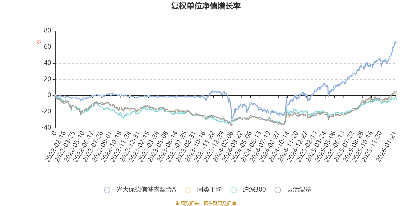 截至1月21日,光大保德信誠鑫混合A近三個(gè)月復(fù)權(quán)單位凈值增長率為18.83%,位于同類可比基金137/1286;近半年復(fù)權(quán)單位凈值增長率為31.30%,位于同類可比基金416/1286;近一年復(fù)權(quán)單位凈值增長率為63.77%,位于同類可比基金170/1286;近三年復(fù)權(quán)單位凈值增長率為66.86%,位于同類可比基金96/1286。