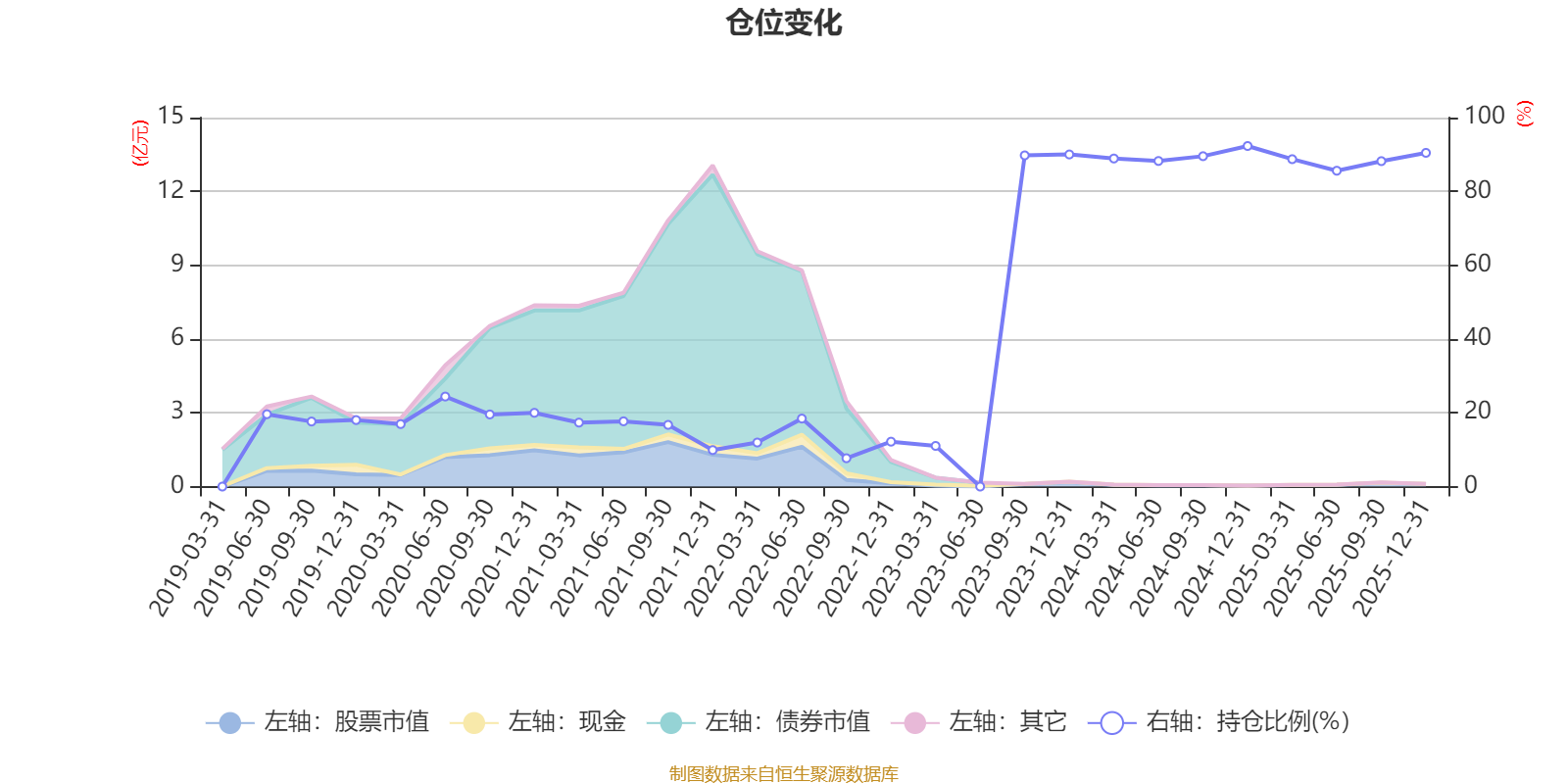 據(jù)定期報(bào)告數(shù)據(jù)統(tǒng)計(jì),近三年平均股票倉位為75.23%,同類平均為72.57%。2024年末基金達(dá)到92.3%的最高倉位,2022年三季度末最低,為7.68%。