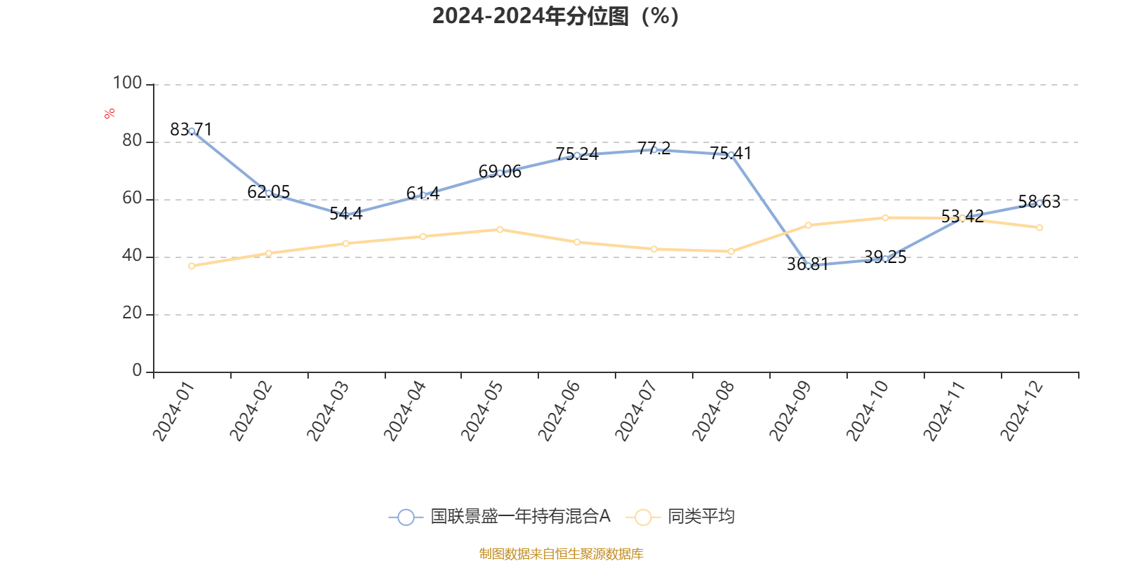 通過所選區(qū)間該基金凈值增長率分位圖,可以觀察該基金與同類基金業(yè)績比較情況。圖為坐標原點到區(qū)間內(nèi)某時點的凈值增長率在同類基金中的分位數(shù)。