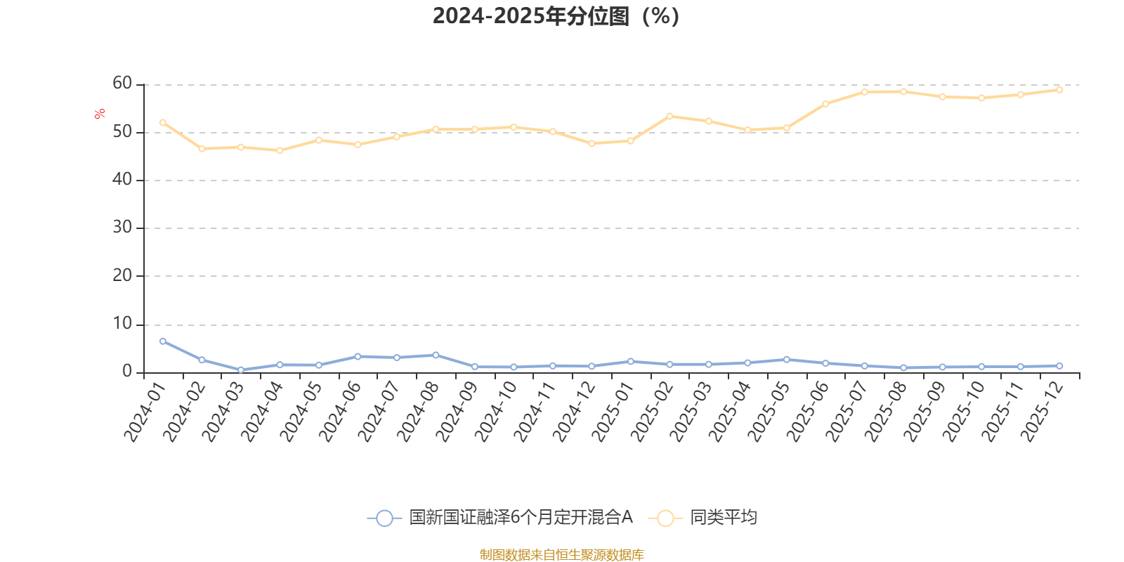 通過所選區(qū)間該基金凈值增長(zhǎng)率分位圖,可以觀察該基金與同類基金業(yè)績(jī)比較情況。圖為坐標(biāo)原點(diǎn)到區(qū)間內(nèi)某時(shí)點(diǎn)的凈值增長(zhǎng)率在同類基金中的分位數(shù)。