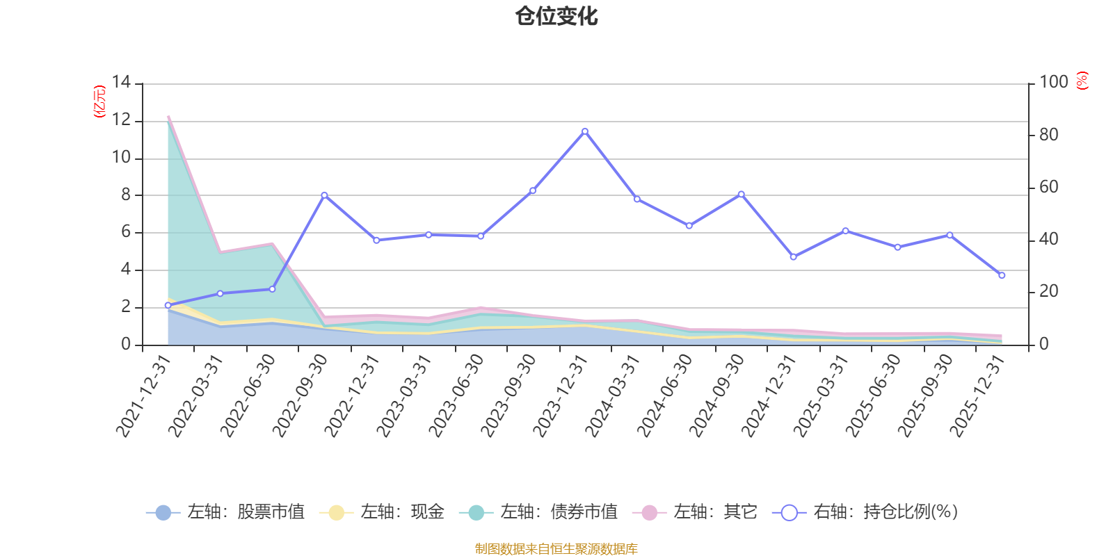 據(jù)定期報(bào)告數(shù)據(jù)統(tǒng)計(jì),近三年平均股票倉(cāng)位為47.26%,同類平均為72.57%。2023年末基金達(dá)到81.69%的最高倉(cāng)位,2021年末最低,為15.19%。