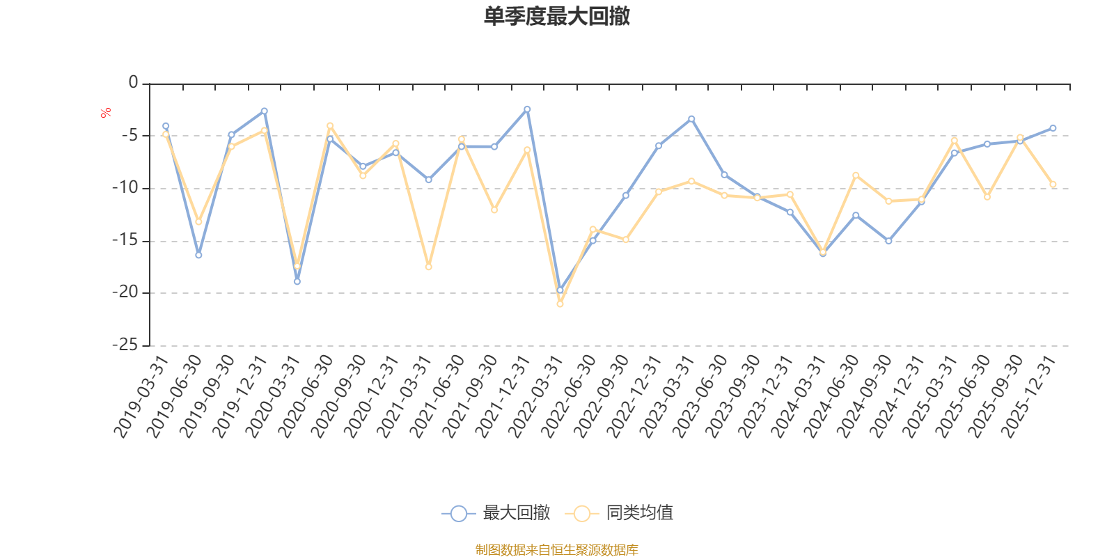 通過所選區(qū)間該基金凈值增長率分位圖,可以觀察該基金與同類基金業(yè)績比較情況。圖為坐標(biāo)原點到區(qū)間內(nèi)某時點的凈值增長率在同類基金中的分位數(shù)。
