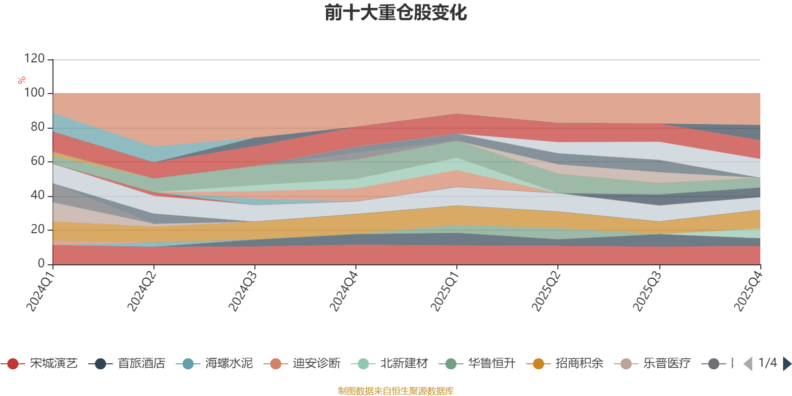 該基金持股集中度較高,近2年前十大重倉股集中度長期超過60%。截至2025年四季度末,基金十大重倉股分別是中國汽研、晨光股份、招商積余、宋城演藝、安井食品、北京人力、北新建材、顧家家居、伊利股份、首旅酒店。
