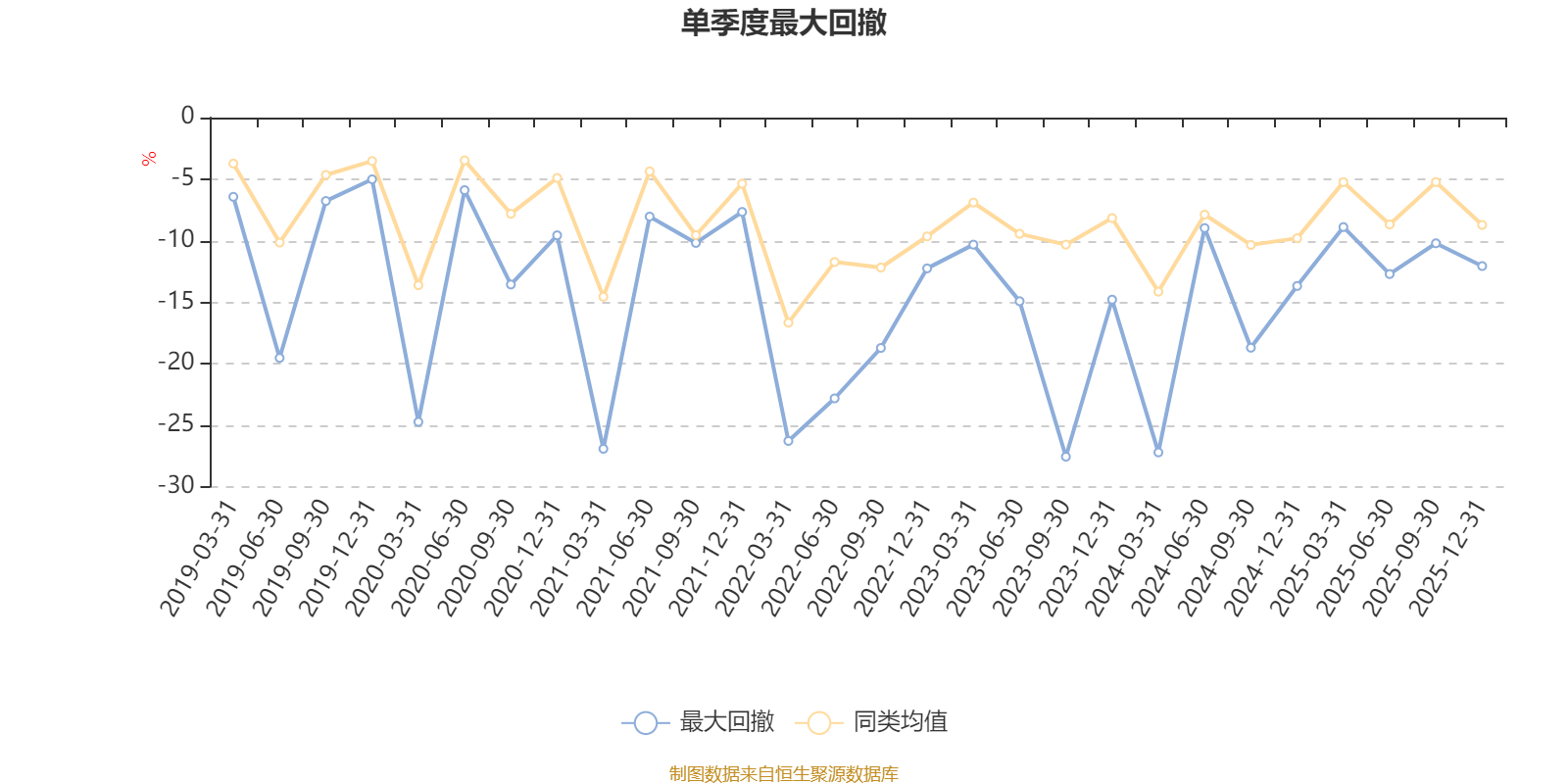 通過所選區(qū)間該基金凈值增長率分位圖,可以觀察該基金與同類基金業(yè)績比較情況。圖為坐標原點到區(qū)間內某時點的凈值增長率在同類基金中的分位數(shù)。