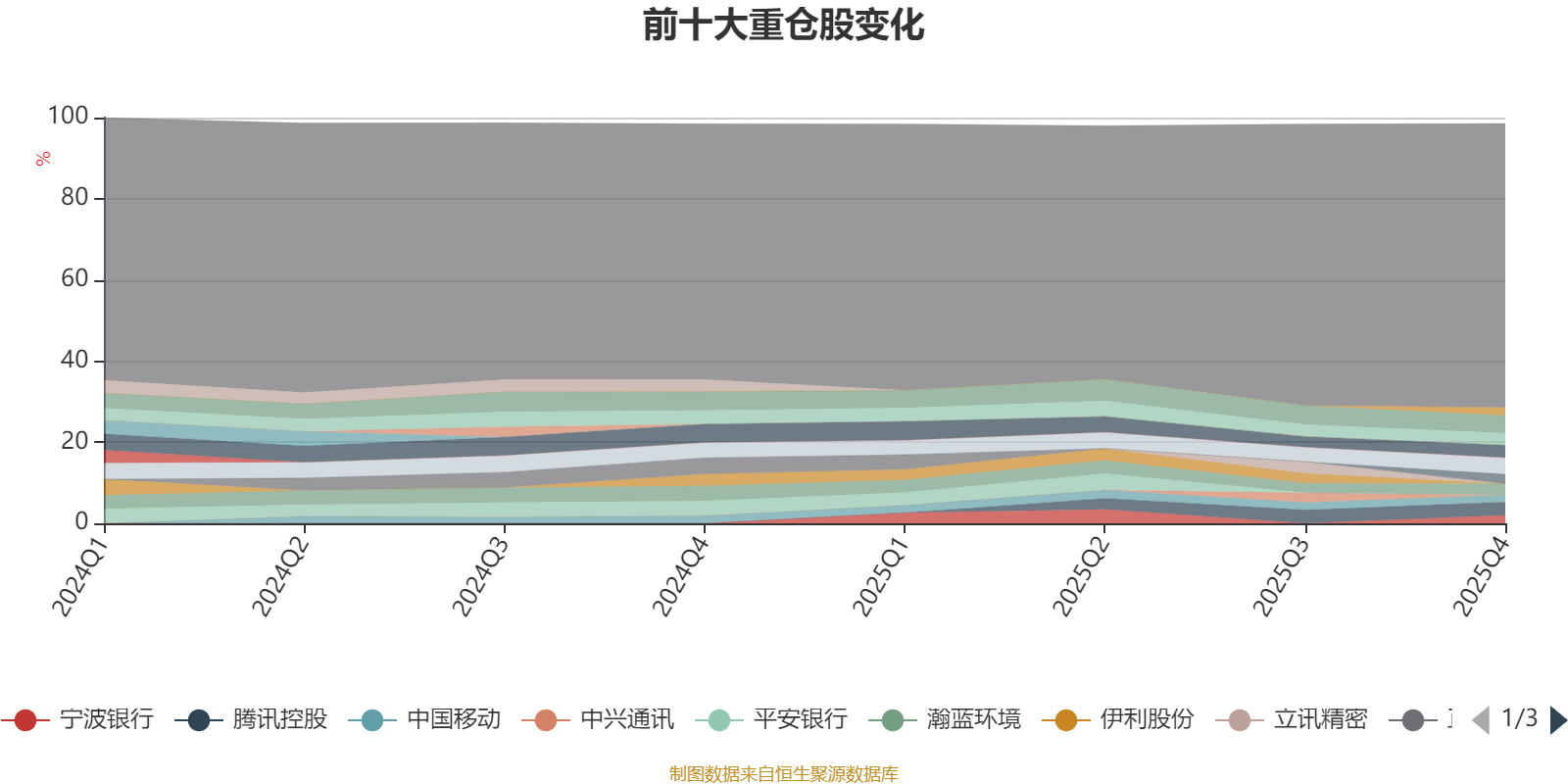 截至2025年四季度末,基金十大重倉股分別是寧德時代、海爾智家、騰訊控股、美的集團、分眾傳媒、瀚藍環(huán)境、??低?/a>、寧波銀行、寶豐能源、中國移動。