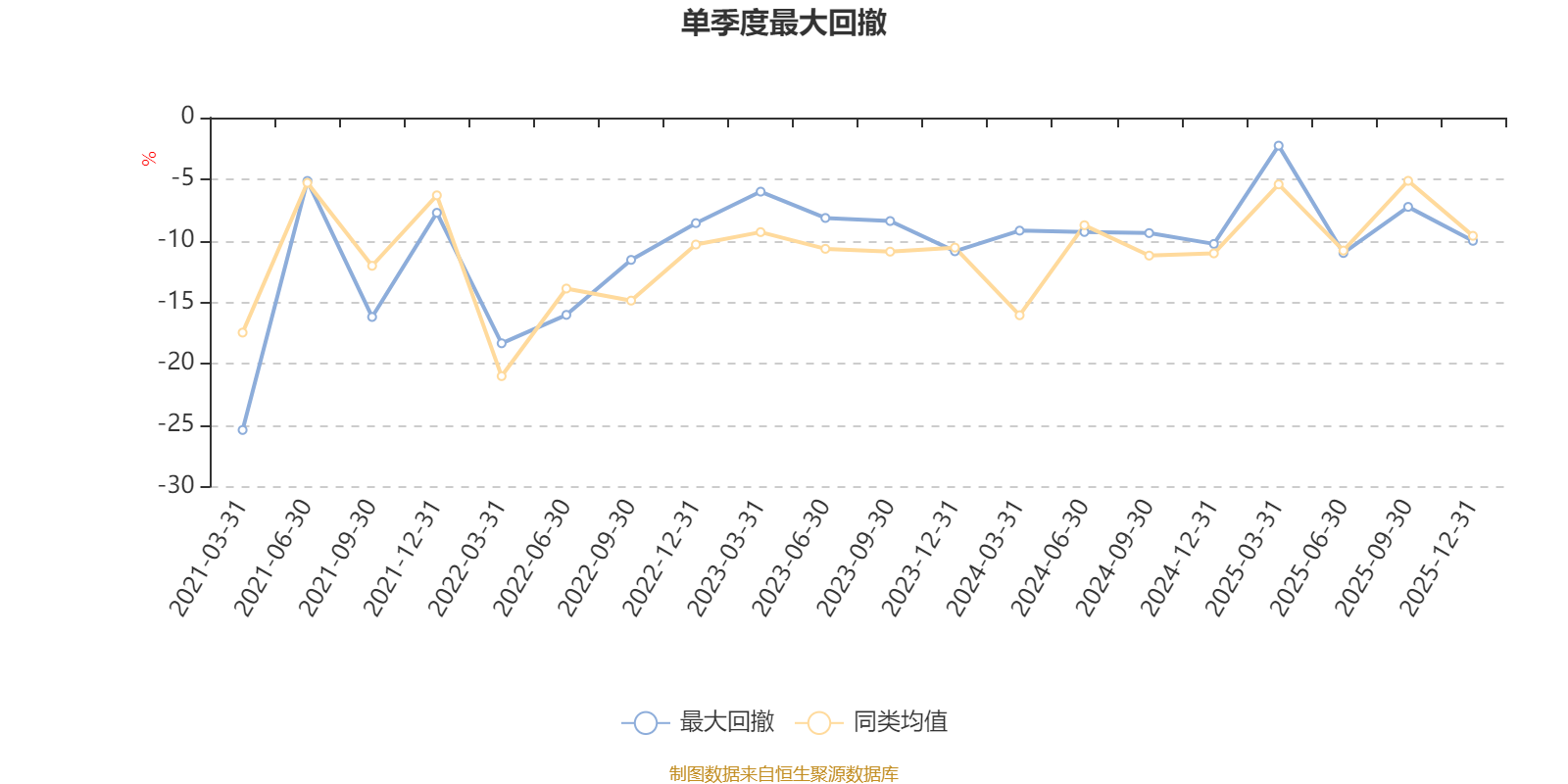 截至1月22日,基金近三年最大回撤為29.8%,同類可比基金排名42/177。單季度最大回撤出現(xiàn)在2021年一季度,為25.4%。