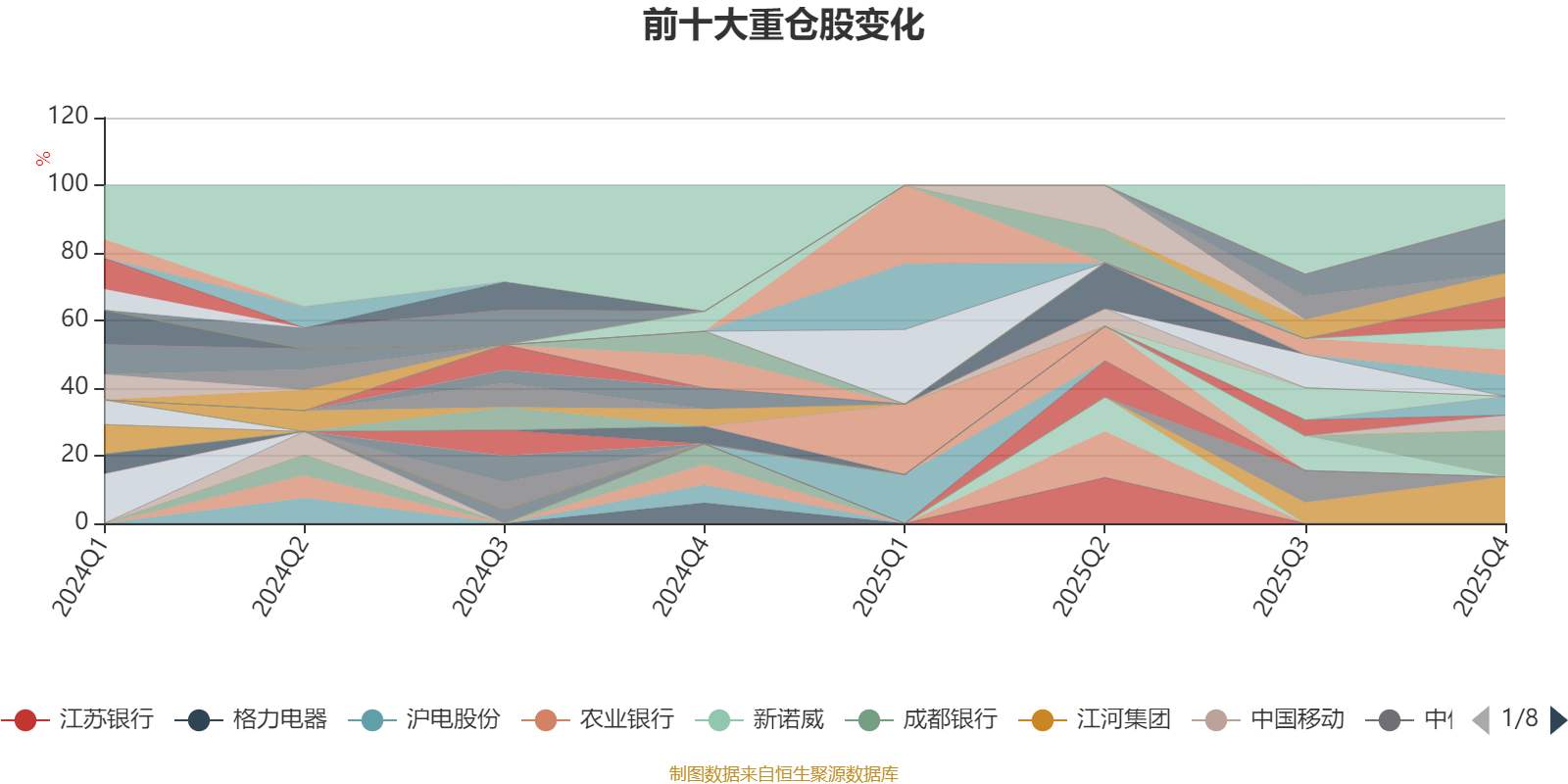 該基金持股集中度較高,近2年前十大重倉股集中度長期超過60%。截至2025年四季度末,基金十大重倉股分別是紫金礦業(yè)、江河集團(tuán)、華魯恒升、中際旭創(chuàng)、新易盛、華友鈷業(yè)、山東黃金、中礦資源、恒力石化、濰柴動(dòng)力。
