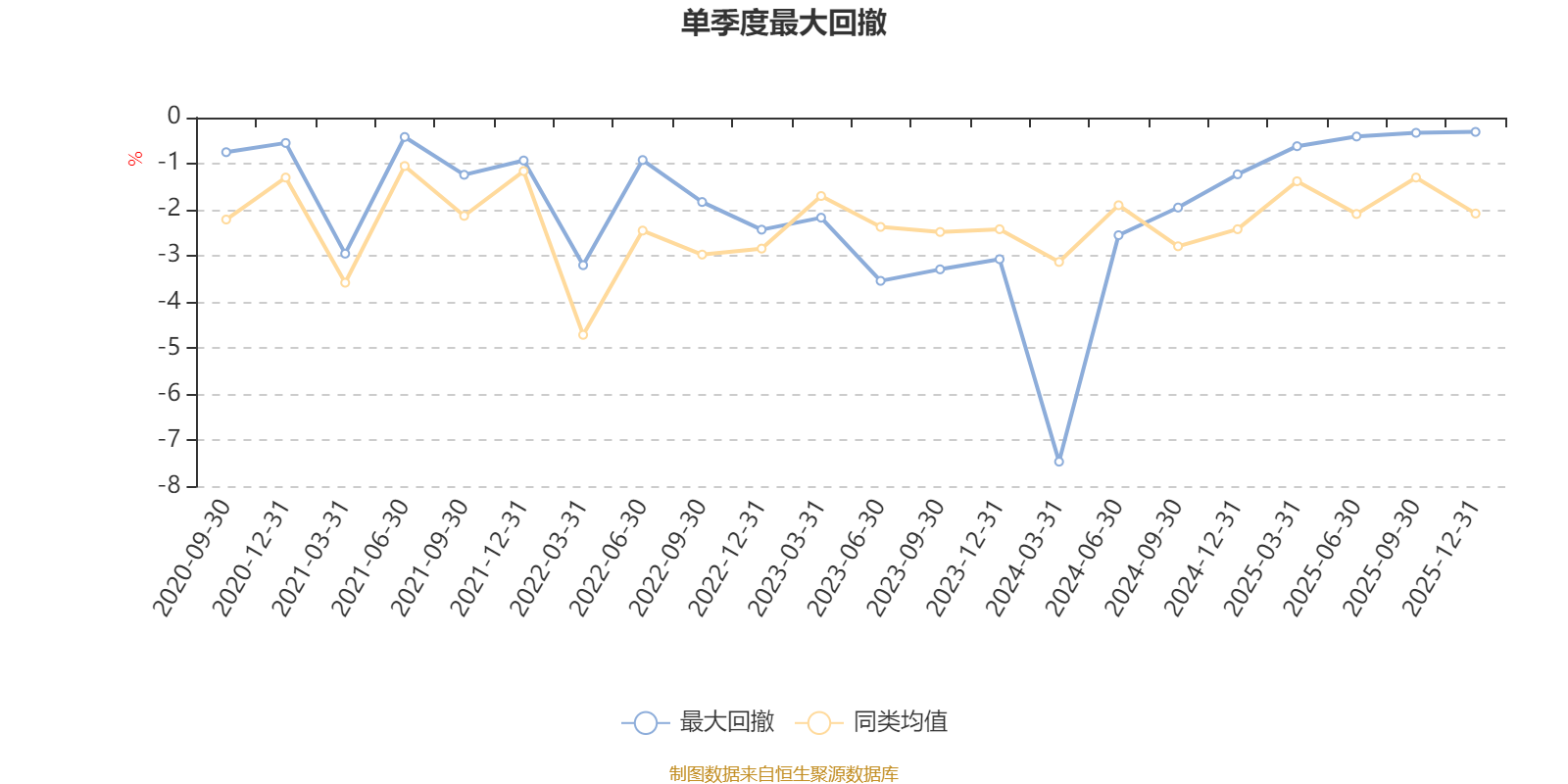 截至1月22日,基金近三年最大回撤為12.55%,同類可比基金排名452/527。單季度最大回撤出現(xiàn)在2024年一季度,為7.46%。