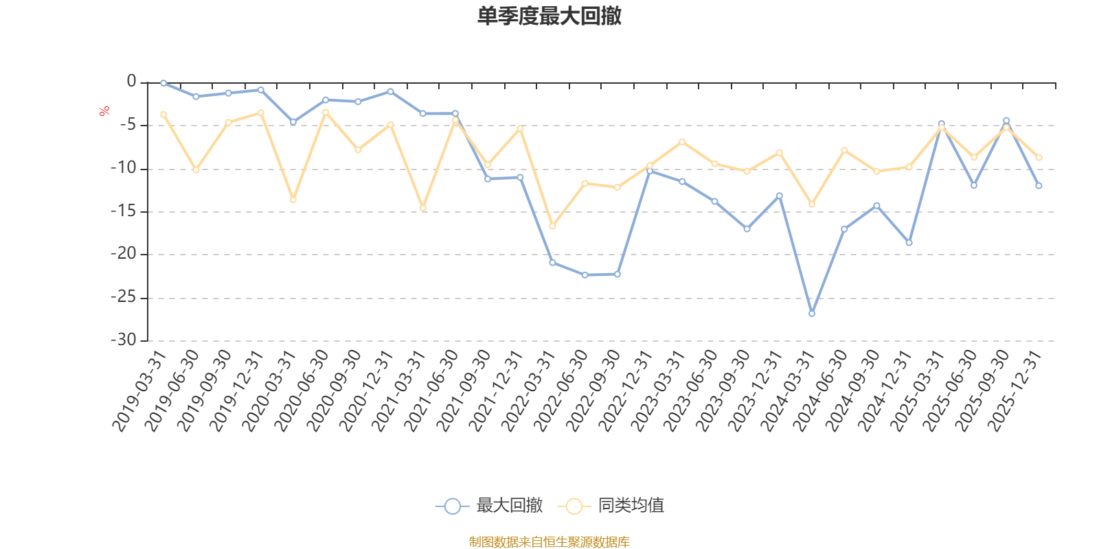 截至1月22日,基金近三年最大回撤為50.72%,同類可比基金排名1202/1264。單季度最大回撤出現(xiàn)在2024年一季度,為26.85%。