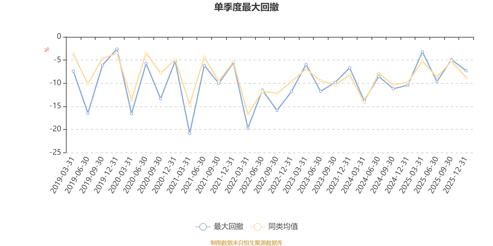 通過(guò)所選區(qū)間該基金凈值增長(zhǎng)率分位圖,可以觀察該基金與同類(lèi)基金業(yè)績(jī)比較情況。圖為坐標(biāo)原點(diǎn)到區(qū)間內(nèi)某時(shí)點(diǎn)的凈值增長(zhǎng)率在同類(lèi)基金中的分位數(shù)。